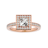 Jolie Diamond Halo Ring is a striking masterpiece featuring a princess-cut diamond at its center, framed within a geometric square halo of pavé-set diamonds. The sleek white gold setting enhances its contemporary elegance, while the diamond-encrusted band adds brilliance to every angle.